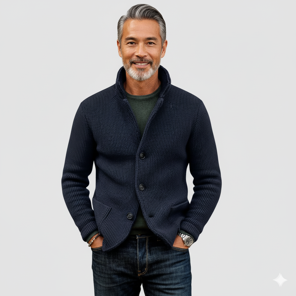 展現低調自信的高品質針織開襟毛衣,專為成人設計。