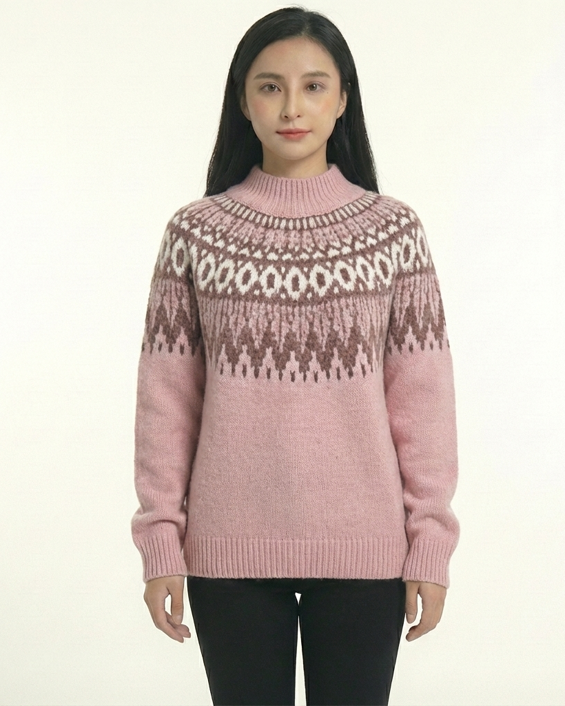 這款柔軟的中等厚度毛衣採用溫暖的腮紅色調,並在肩部有精緻的象牙和玫瑰圖案。為喜愛舒適與微妙女性化的女性而設,這件作品提供光滑、柔和的觸感,及理想的修身剪裁,適合日常穿著。