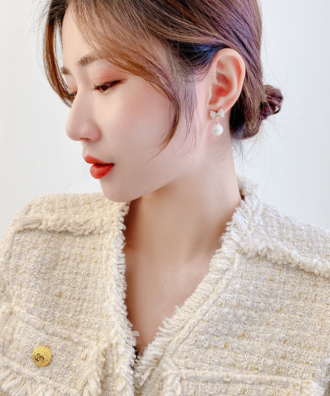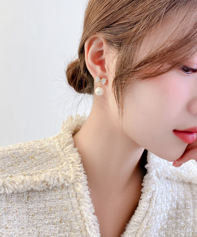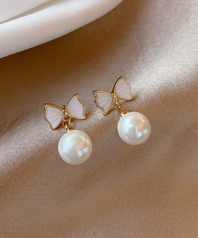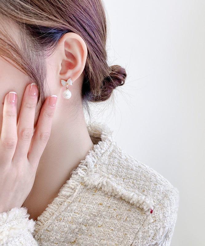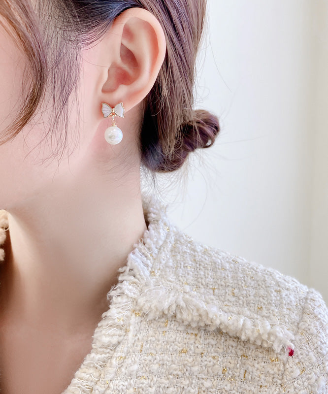為什麼你會喜歡 優雅白色銅合金蝴蝶結貝殼珍珠垂墜耳環