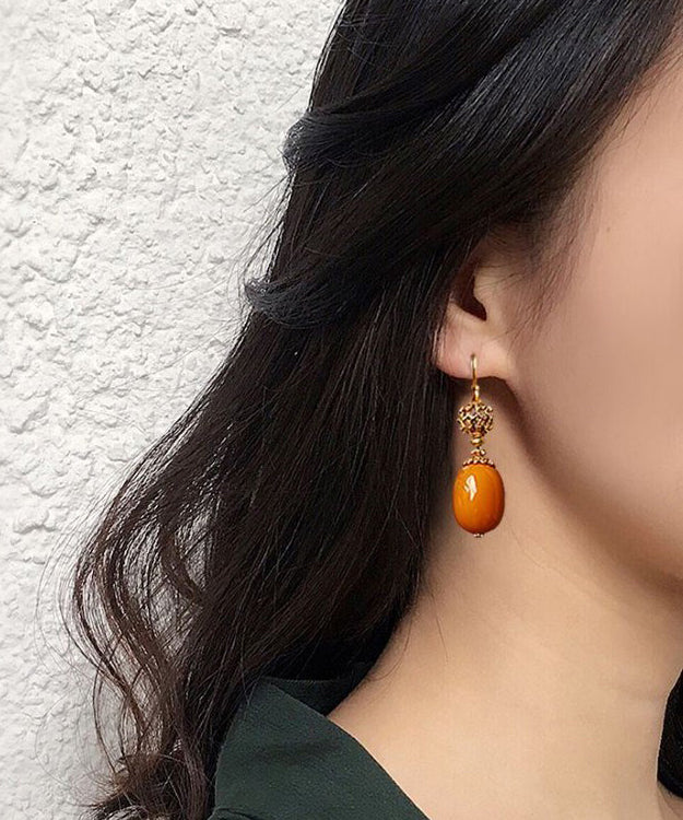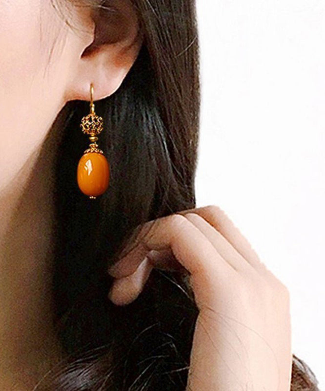 復古橙色純銀古金蜂蠟垂墜耳環 — 精緻優雅飾品,展現細膩質感與品味風格