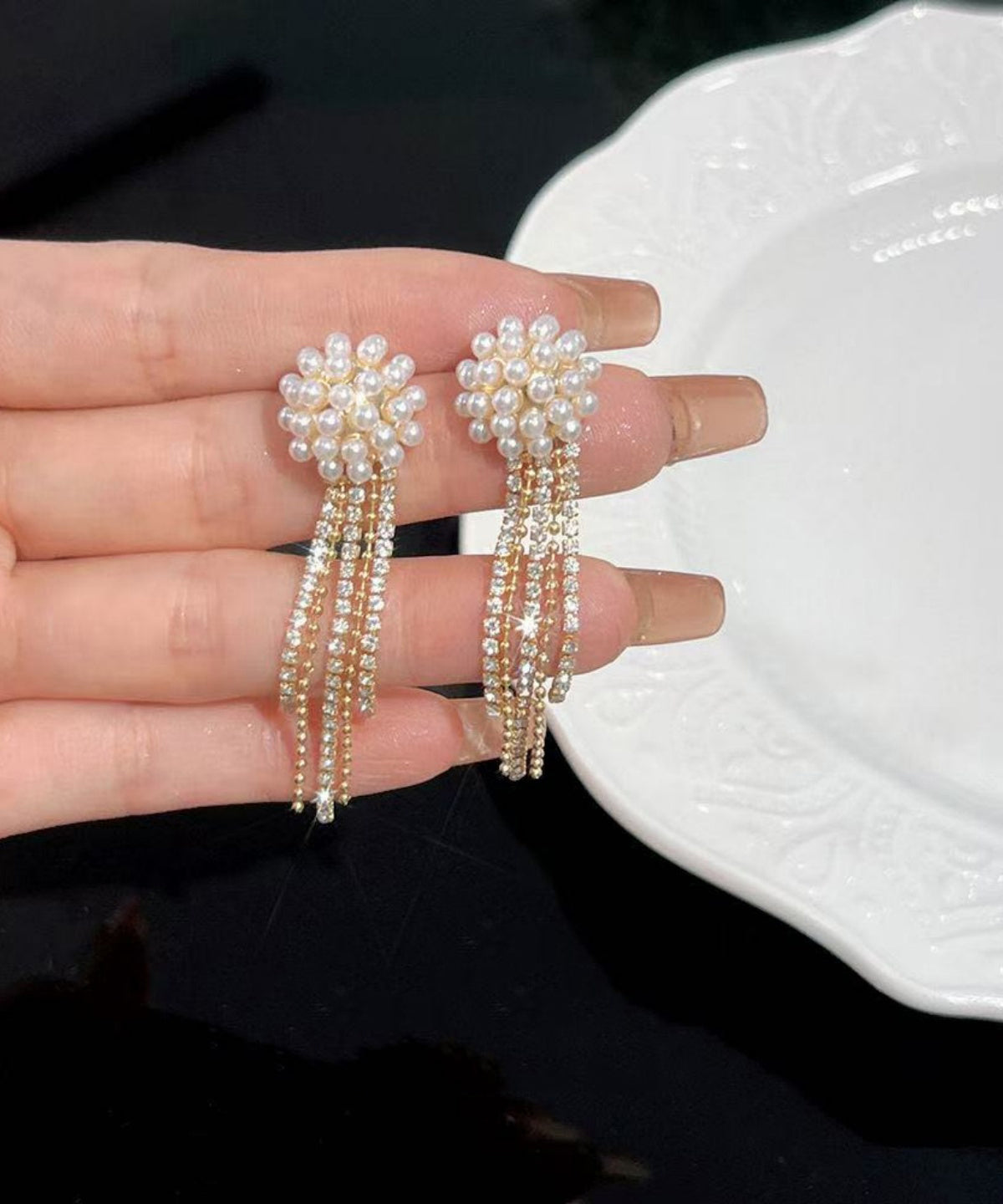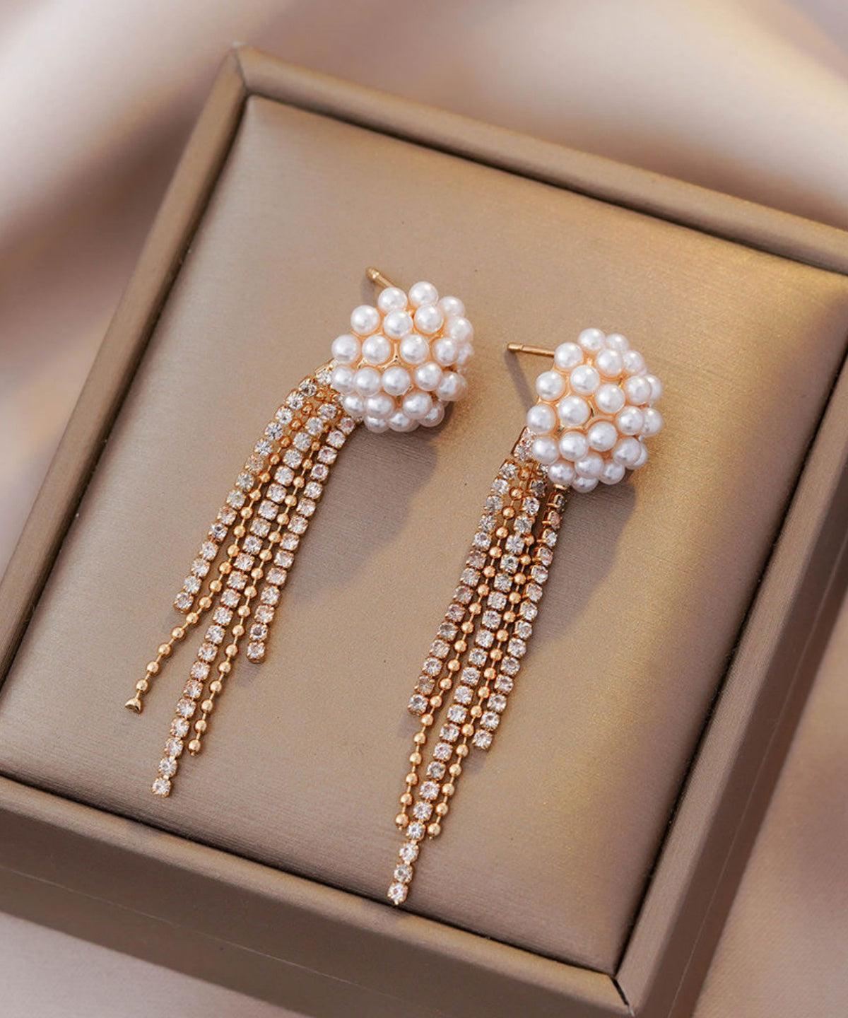 時尚金銀銀鍍珍珠流蘇垂墜耳環 — 精緻優雅飾品,展現細膩質感與品味風格
