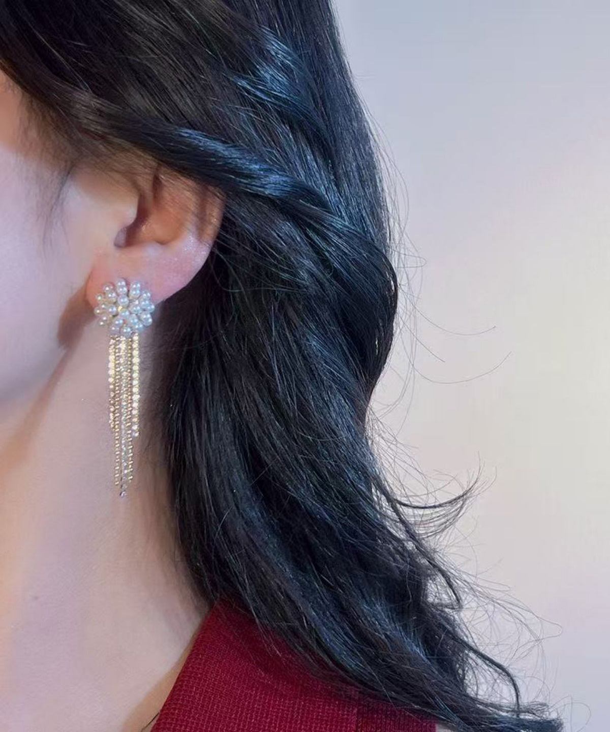 時尚金銀銀鍍珍珠流蘇垂墜耳環以細膩工藝打造,每一個角度都散發柔和光澤。無論是日常配戴、約會、聚會或正式場合, 都能為整體造型增添質感與魅力,是值得珍藏與送禮的迷人配件。