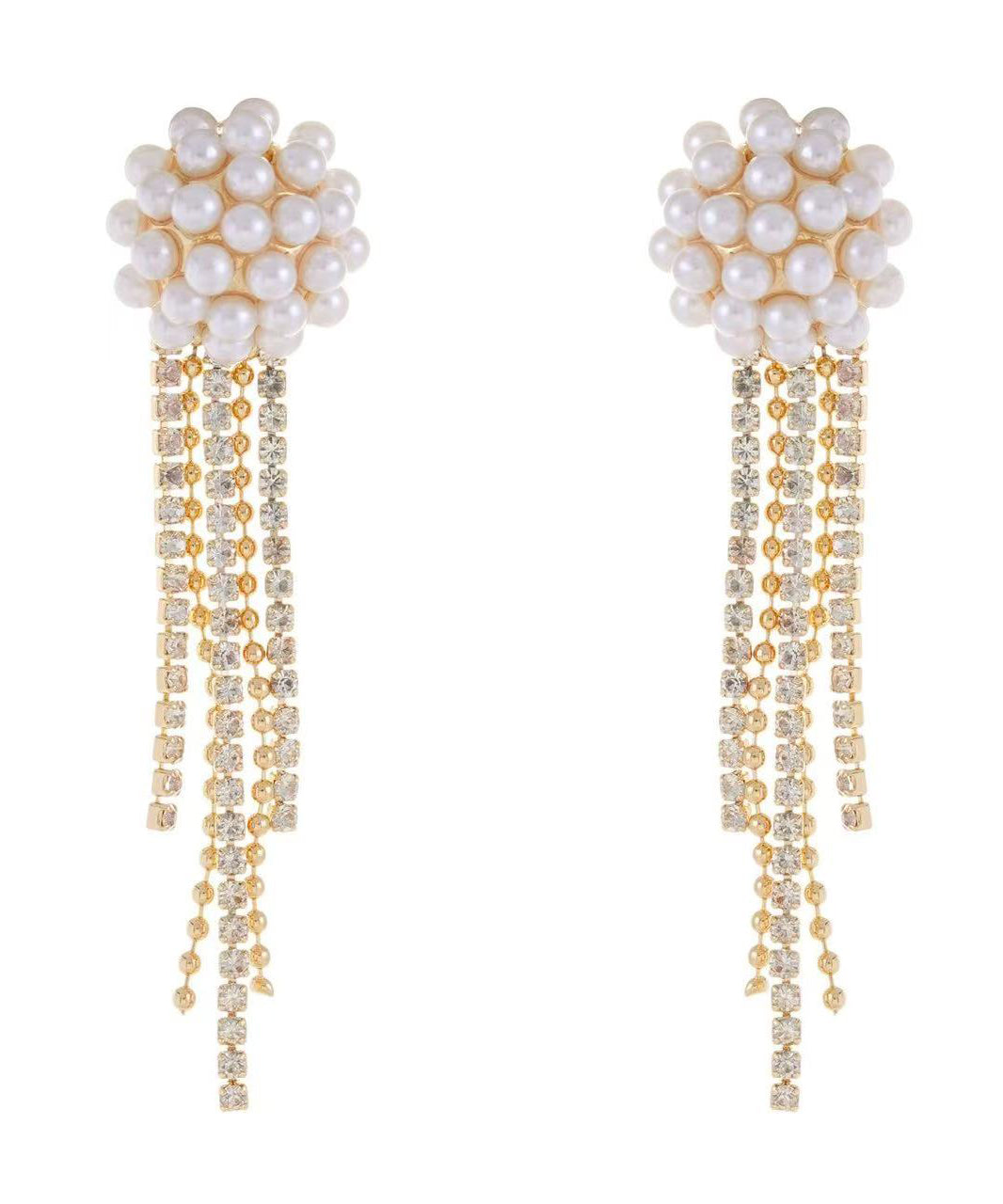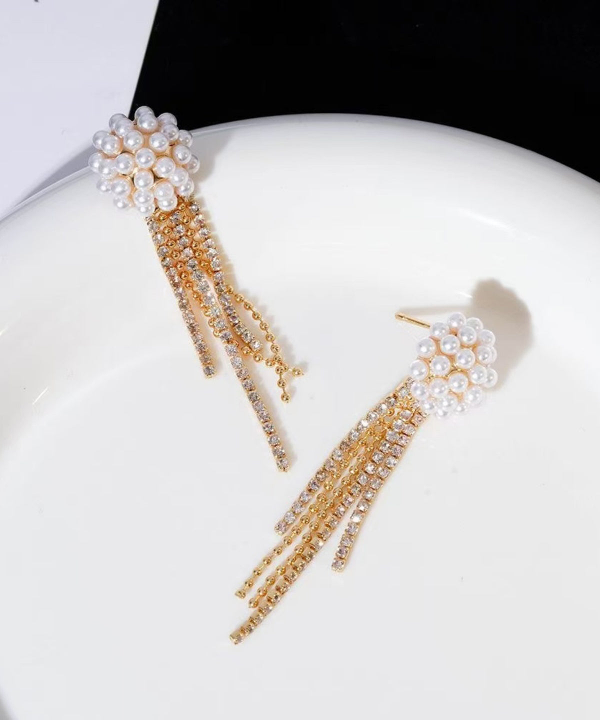 時尚金銀銀鍍珍珠流蘇垂墜耳環