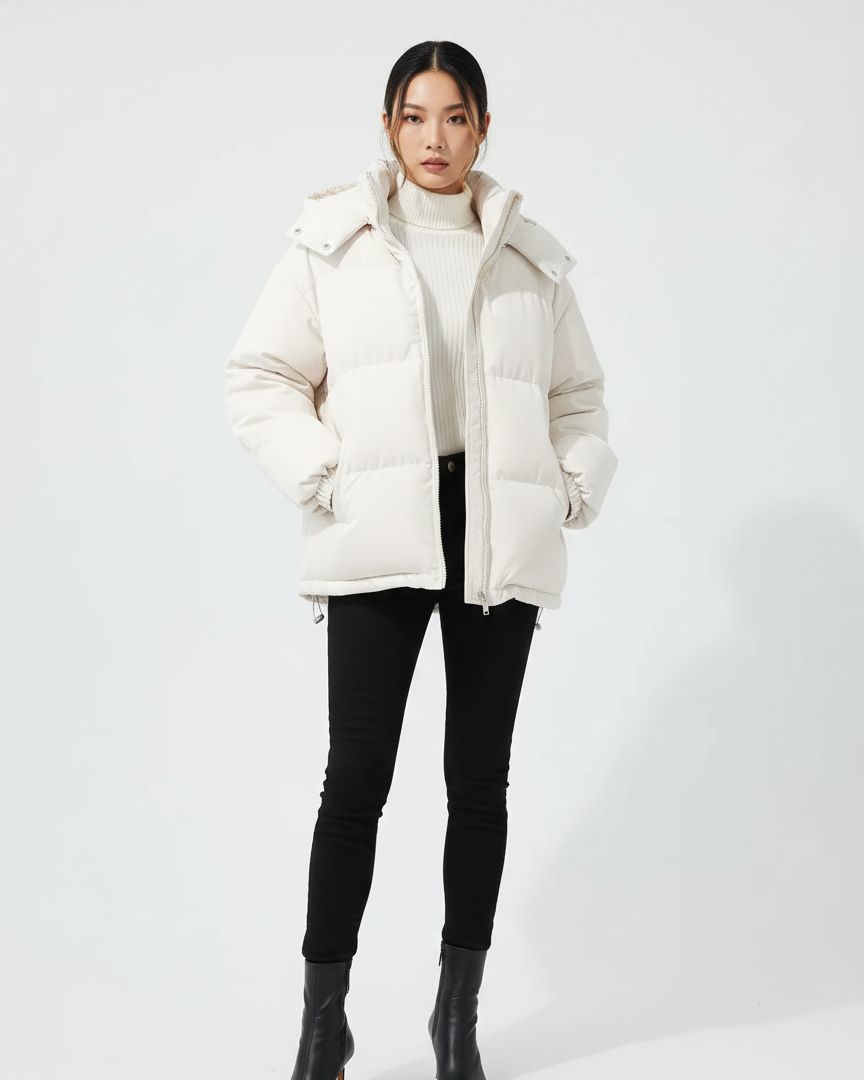 Haisley | 經典羽絨外套 是一款冬季必備單品,旨在提供最大的舒適感和風格。它擁有絎縫填充、舒適的帽子和簡約的輪廓,提供了溫暖和多樣性。柔和的奶油色調使其易於搭配,無論是休閒出遊還是城市漫步。